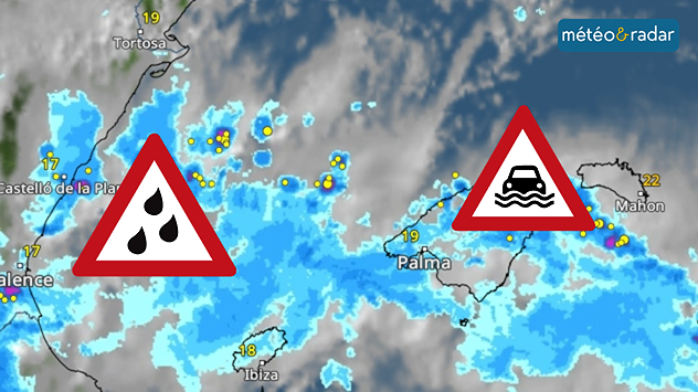 Notre carte radar météo montrant de nombreux orages dans l'est de l'Espagne.