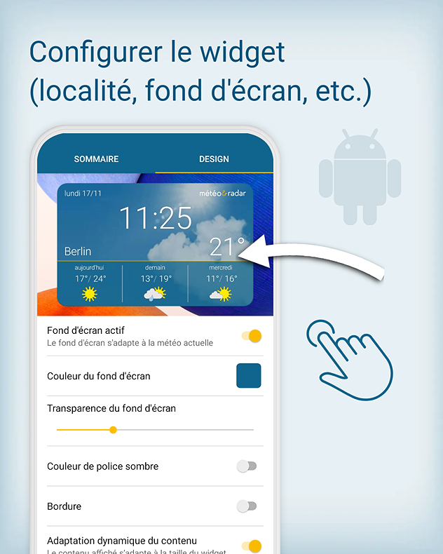Pour ajouter le widget Météo & Radar sous Android - voici comment procéder :