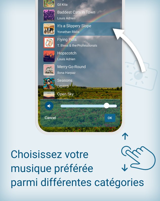 Le lieu, la température et même la carte du radar météo actuel sont ajoutés automatiquement par l’application. La musique ou les filtres se choisissent ensuite selon votre humeur.